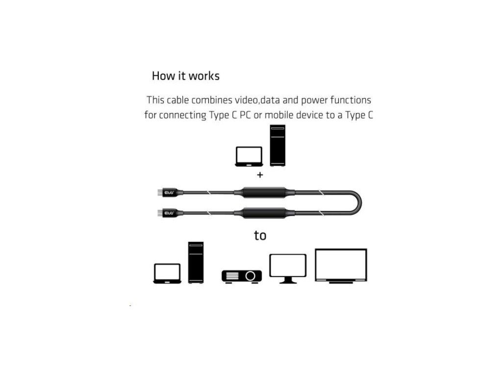 Tento kábel kombinuje funkcie videa, dát a napájania na pripojenie počítača alebo mobilného zariadenia s rozhraním USB typu C k displeju/VR/HardDrive/