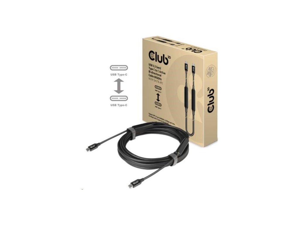 Kábel USB Club3D 3.2 Gen2 Type-C to C Active Bi-directional (M/M) 8K60Hz, 5m