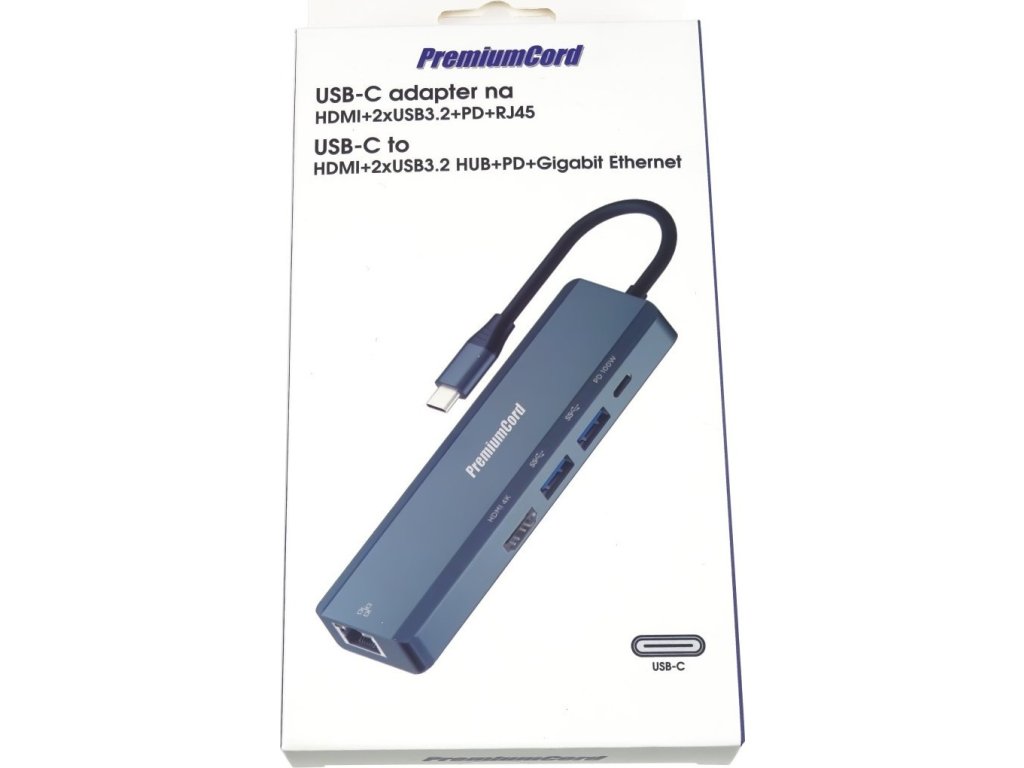PremiumCord USB-C na HDMI + 2x USB3.2 + PD 100W+ RJ45 10/100/1000Mbps adaptér