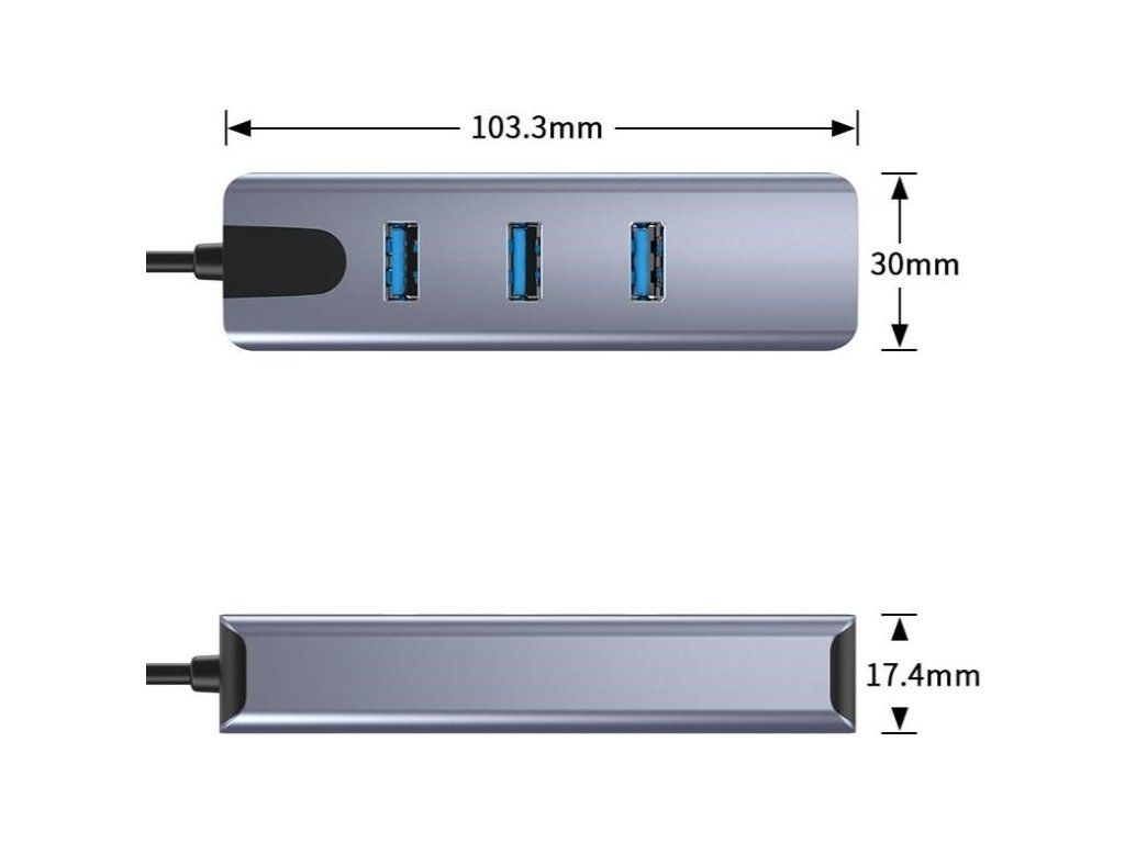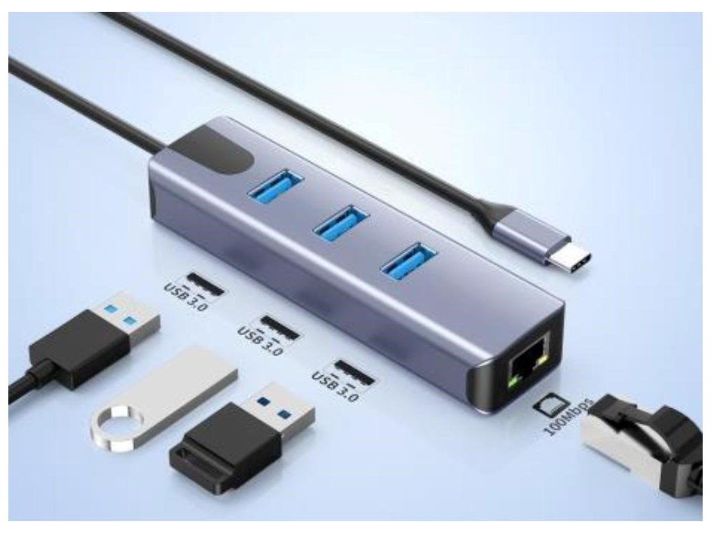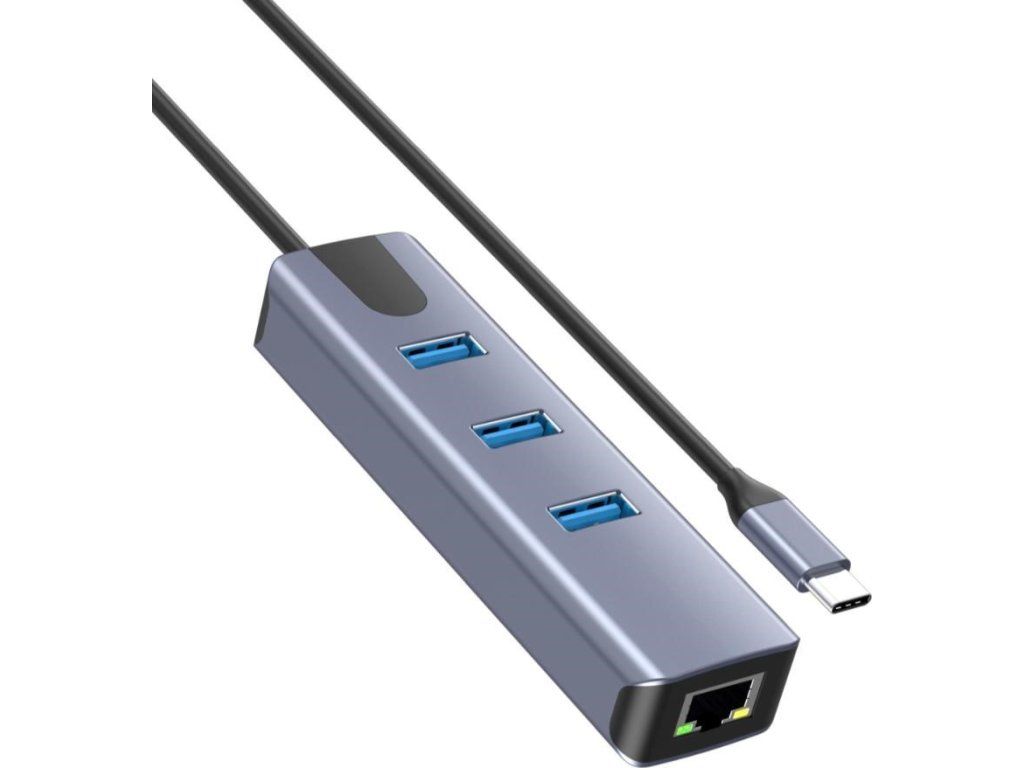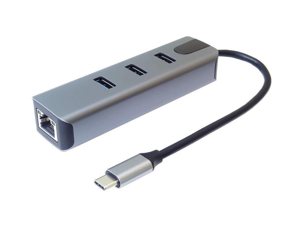 Prevádzač, ktorý umožní pripojiť Váš počítač s portom USB typu C do internetu alebo k lokálnej sieti pomocou kábla s RJ45 (Gigabit) a navyše umožňuje zapojiť tri USB3.2 (5 Gbps) periferie ako USB disk, tlačiareň, klávesnicu a myš