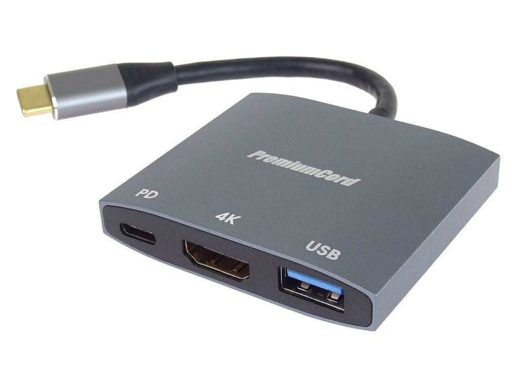 PremiumCord adaptér USB-C na HDMI, USB3.0, PD, 4K a FULL HD 1080p rozlíšenie