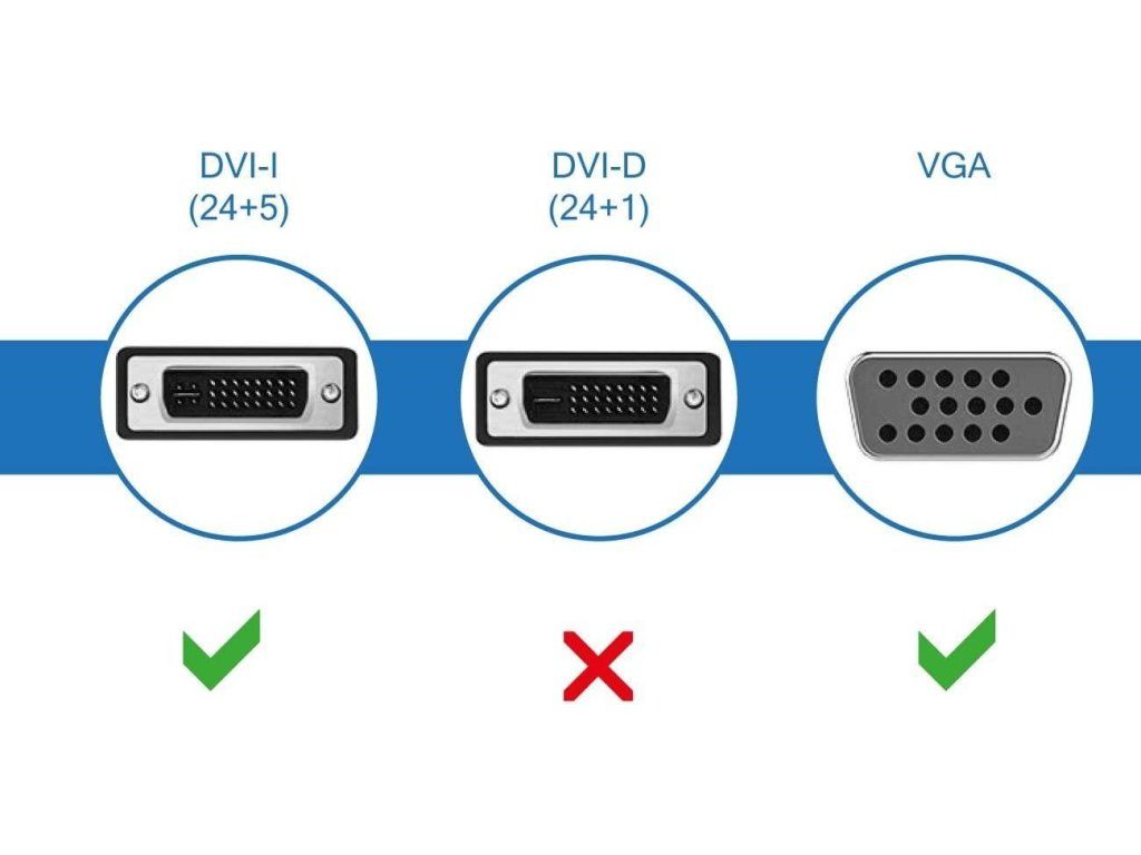 Redukcia umožňujúca pripojiť monitor so štandardným VGA konektorom do DVI-I výstupu (teda DVI výstup obsahujúci aj analógové obrazové signály) na grafickej karte.