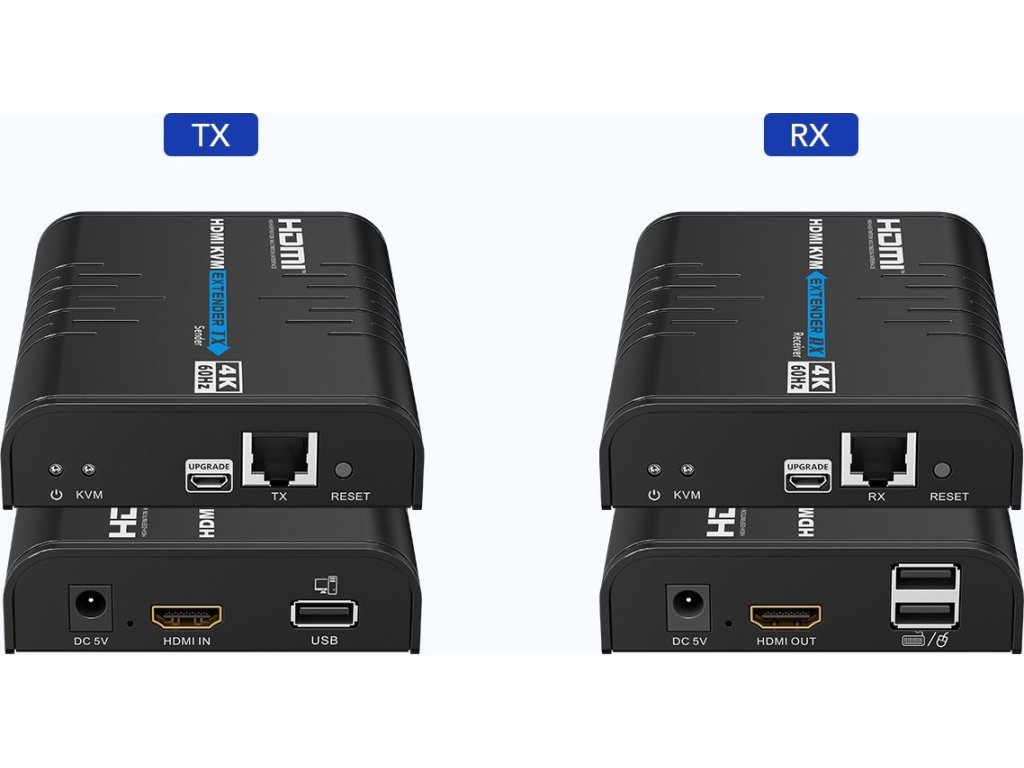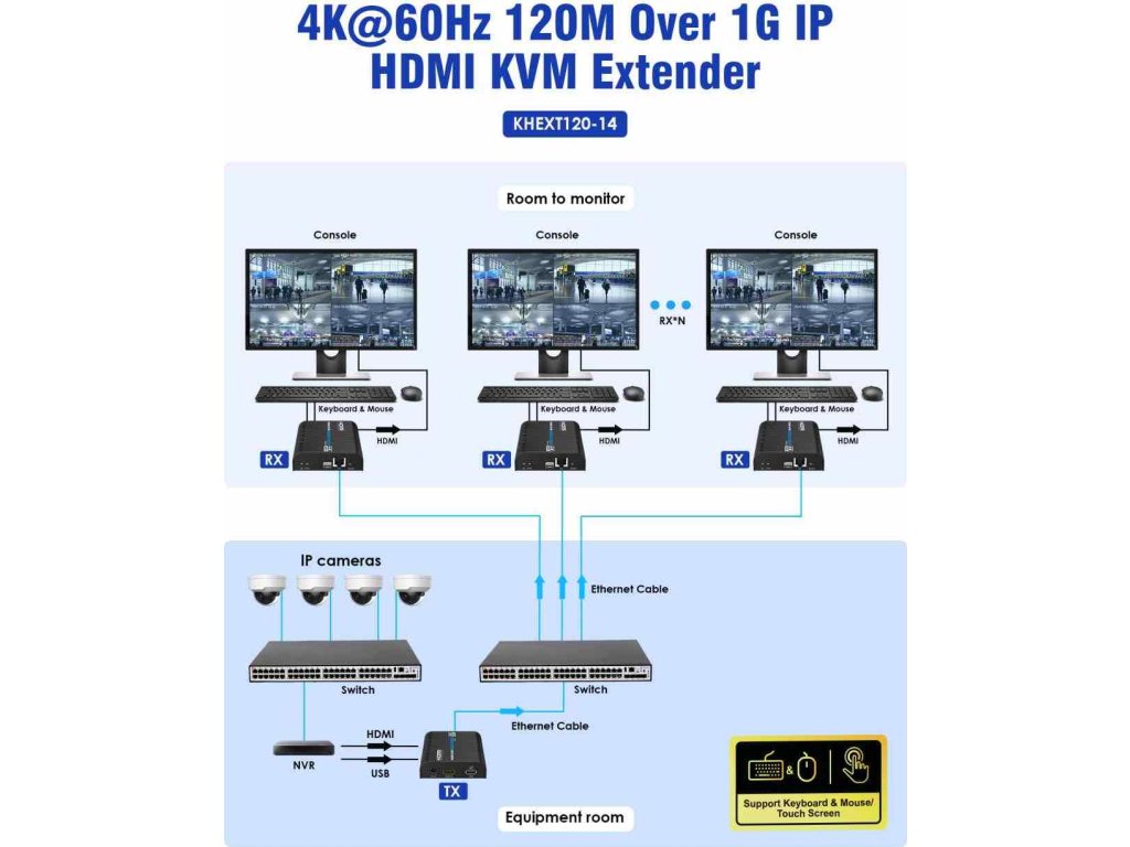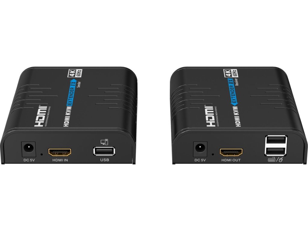 Zařízení umožňuje po jednom síťovém kabelu nebo přes ethernet síť přenést HDMI 4K@60Hz nebo FULL HD 1080p signál a připojit USB periferie, klávesnici,myš nebo dotykovou obrazovku až na vzdálenost 120m nebo 200m při přímém propojení.