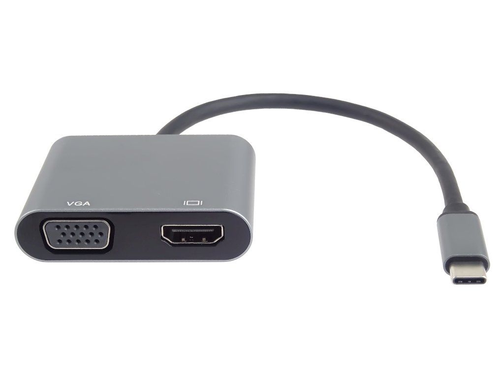 Tento adaptér umožňuje vysoce kvalitní převod videa a zvuku z USB-C konektoru na HDMI a VGA konektor pro dva monitory/TV/projektory. Funguje jako externí grafická karta s dvěma výstupy.