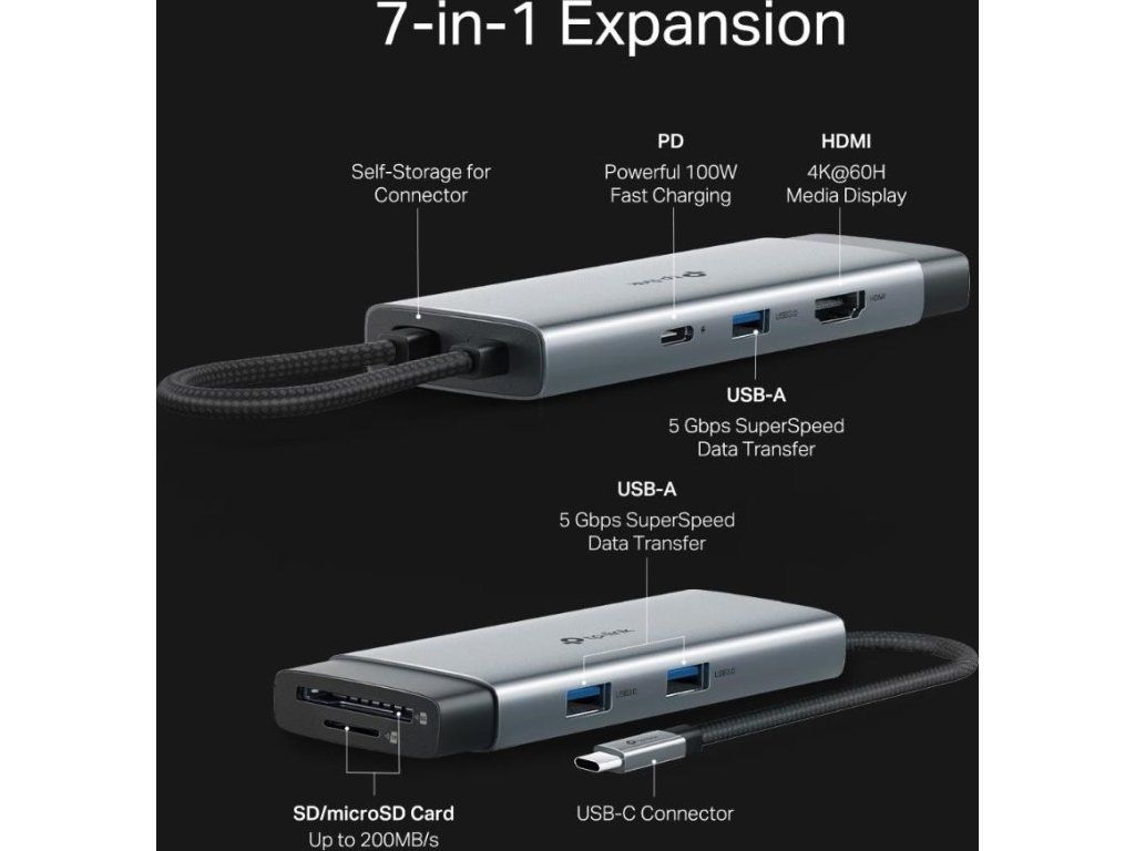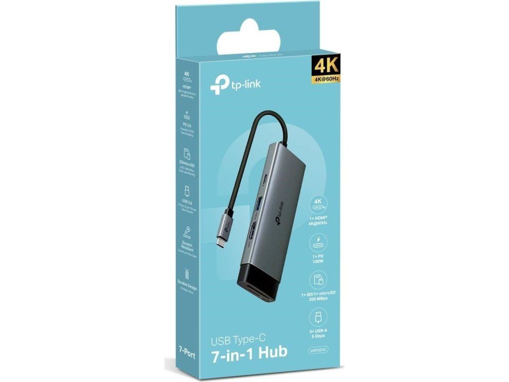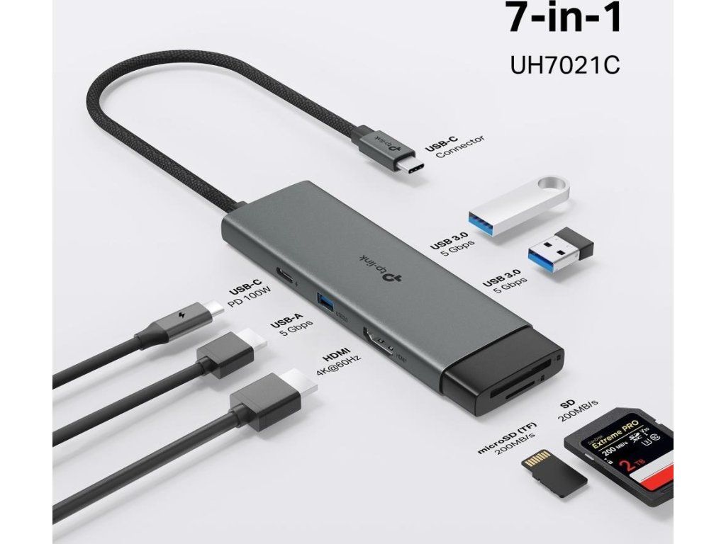 TP-Link UH7021C USB-C hub 7v1 (3x USB3.2Gen1,1xUSB-C3.2Gen1, 1xHDMI, 1xSD, 1xmicroSD, PD 100W)