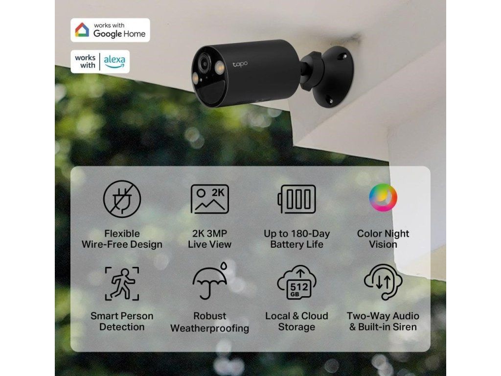 - Batéria s dlhým životnosťou: Vďaka až 180-dňovej výdrži batérie na jedno nabitie minimalizuje Tapo C411 akúkoľvek údržbu.