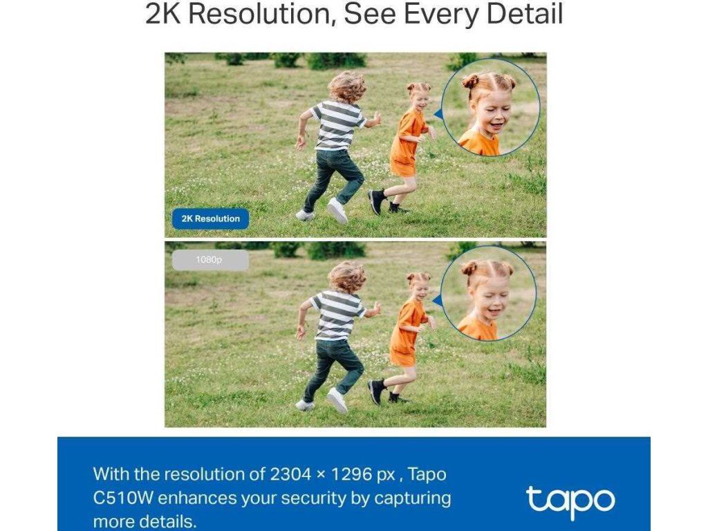 - Rozlíšenie 3MP: S rozlíšením 2 304 × 1 296 px zvyšuje kamera Tapo C510W vašu bezpečnosť, pretože zachytáva viac detailov v porovnaní so štandardným rozlíšením 1080p (1 920 × 1 080 px).