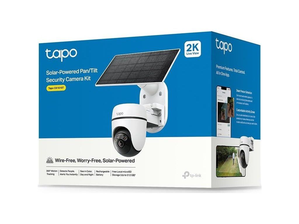 | Package Content | Tapo C610 Kamera × 1 Tapo A201 Solárny panel × 1 Držiak na solárny panel Tapo A201 × 1 Základová krytka × 1 Kábel USB adaptéra × 1 Rozšírenie vodiča × 1 Zip na kábel × 1 Inštalačné skrutky a chemické hmoždinky Inštalačné šablóny Rýchly štartovací sprievodca |