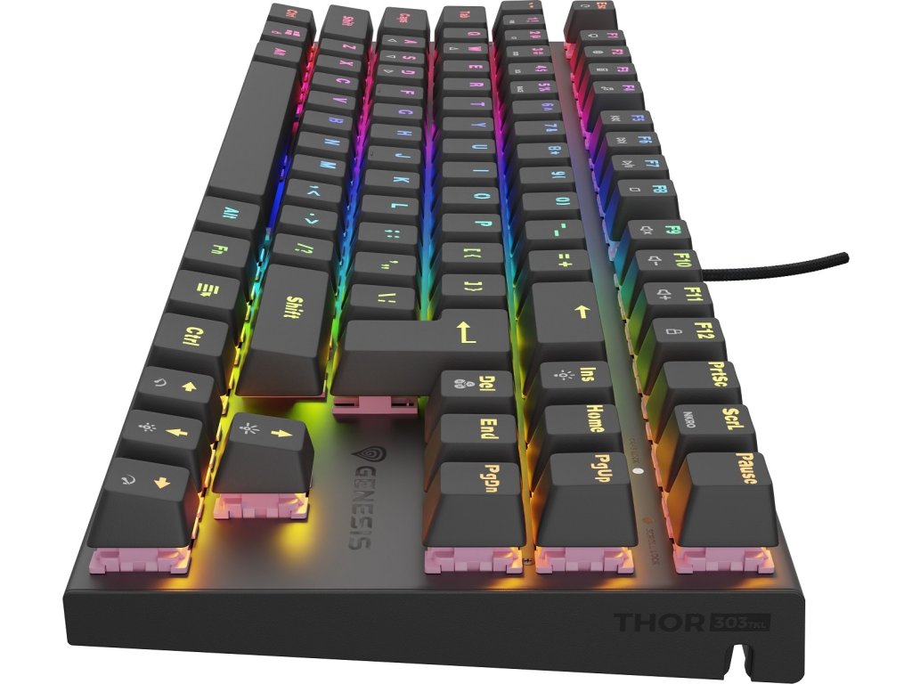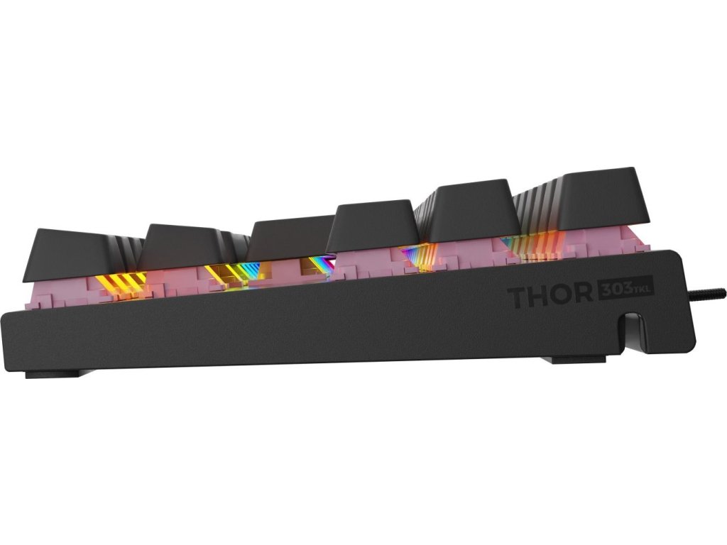 Klávesy Genesis Thor 303 TKL mají životnost až 50 milionů kliknutí. Mechanismus kláves v kombinaci s technikou "Double Injection" a pevným hliníkovým krytem znamená dlouholetou životnost. Počítat můžete také s mnoha dalšími funkcemi, jako je N-Key Rollover (plný Anti - Ghosting), možnost uzamknout klávesy Windows a dokonce i pokročilé světelné efekty RGB Prismo Effect.