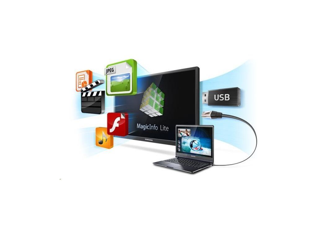 MagicInfo Lite je sofistikovaná technológia, ktorá umožňuje lokálnu alebo vzdialenú správu multimediálneho obsahu, ako sú videá alebo obrázky, ktoré môžete podľa potreby rôzne kombinovať a plánovať ich zobrazenie v požadovanom čase. Toto riešenie umožňuje používať veľkoplošný displej ako samostatnú jednotku bez potreby externého prehrávača. Obsah je možné prehrávať z interného pamäťového úložiska monitora, externého USB alebo vzdialene cez vzdialený server.