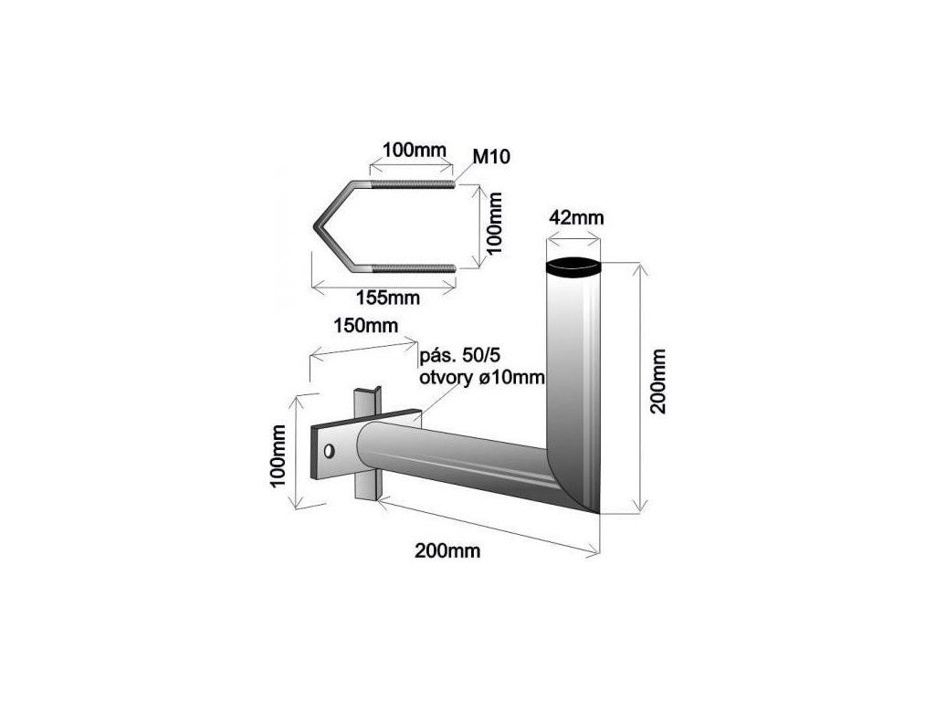 Držiak antény na stožár s vinklóm, dĺžka 20cm