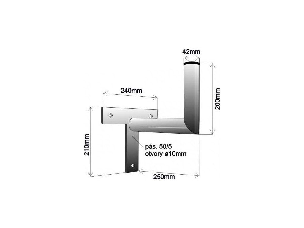 Držák antény na zeď, tvar T, galvanický zinek, délka 25cm
