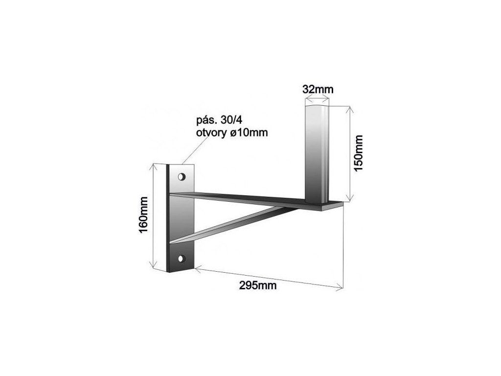 Držák antény na zeď se vzpěrou, galvanický zinek, délka 29cm