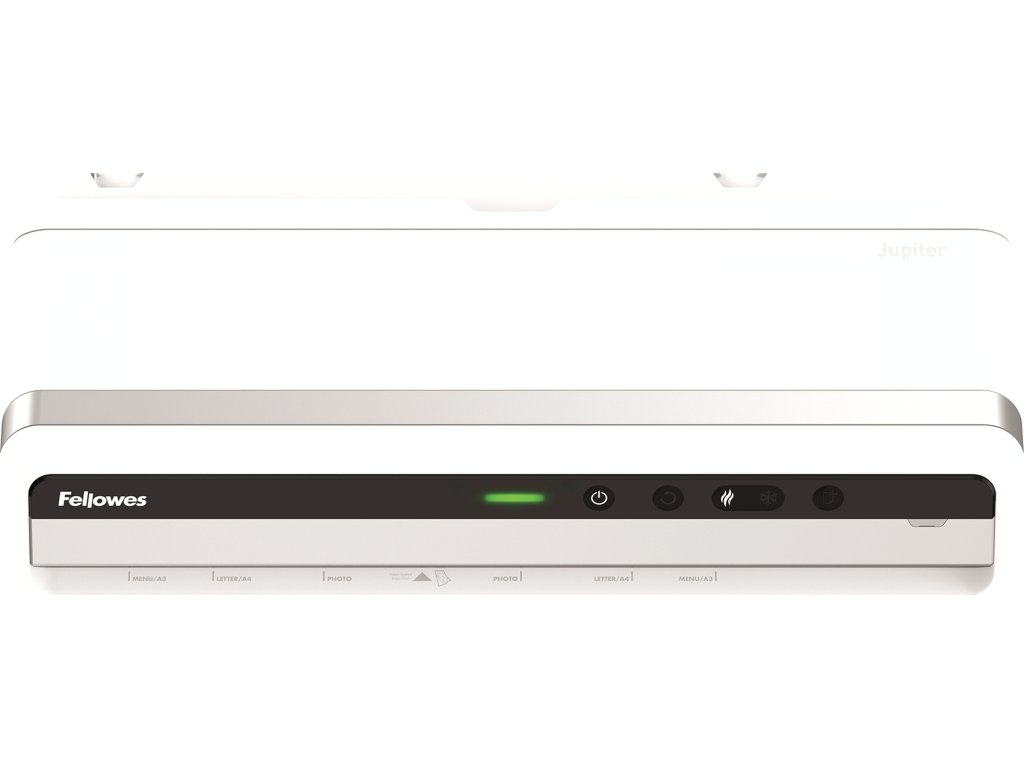 Inteligentní laminátor Fellowes Jupiter pro intenzivní kancelářské využií umožňující laminaci všech druhů hladkých papírů, včetně fotek od formátu vizitky po formát A3. Komfortní obsluha díky unikátní funkci AutoSense. JIŽ ŽÁDNÉ UŽIVATELSKÉ NASTAVOVÁNÍ PARAMETRŮ. Provozní HODNOTY stroje jsou NASTAVENY AUTOMATICKY po vložení laminovaného dokumentu do stroje.