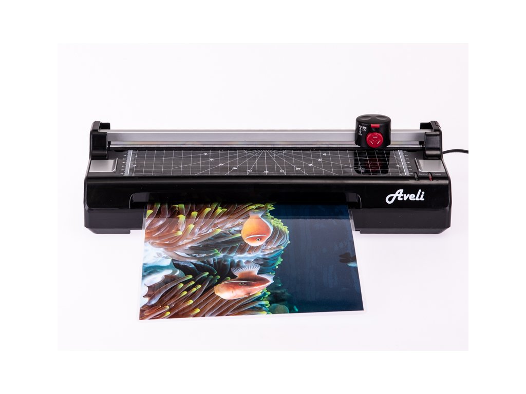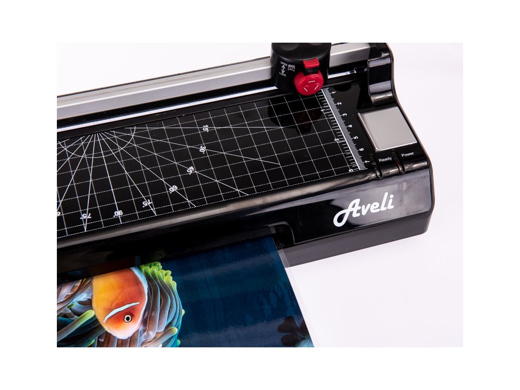 Praktická kombinácia Laminátora AVELI COMBI A4 s kotúčovou rezačkou a zaoblovačom rohov je ideálne riešenie pre domáce použitie alebo menšiu kanceláriu.