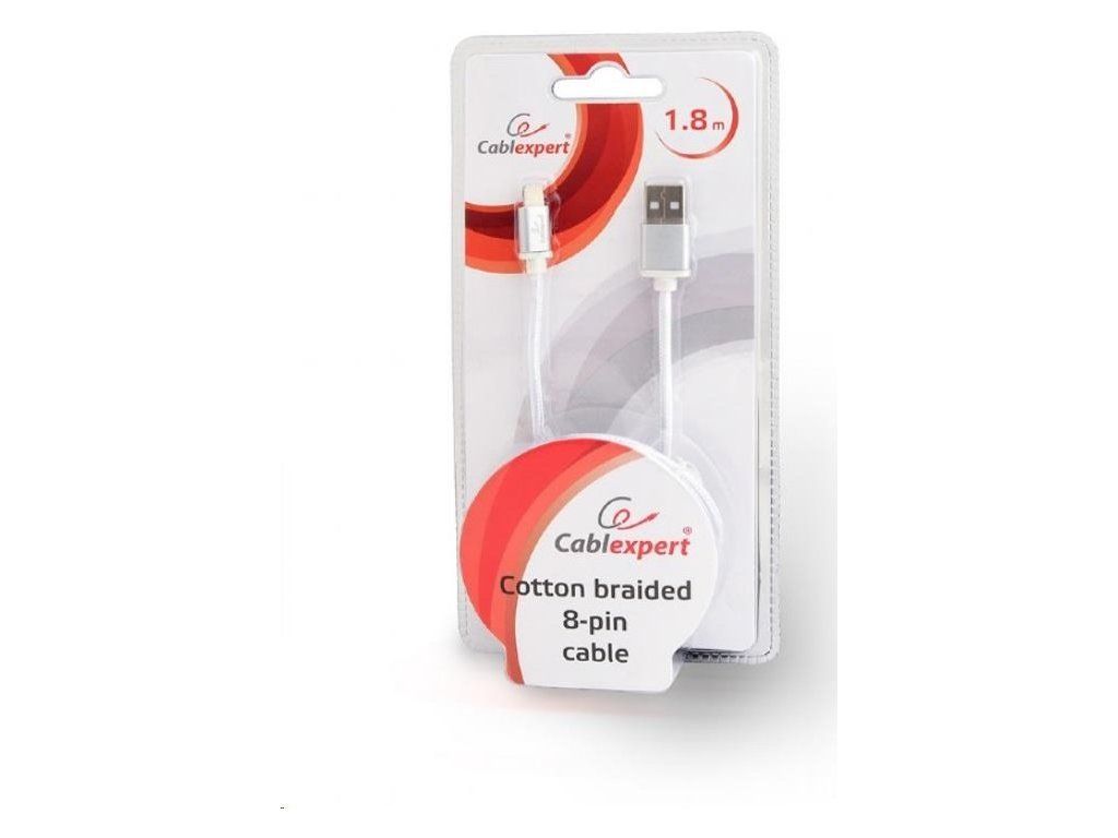 GEMBIRD CABLEXPERT USB 2.0 Nabíjací a synchronizačný kábel Lightning (IP5 a vyšší), opletený, 1,8 m, strieborný, lesklý