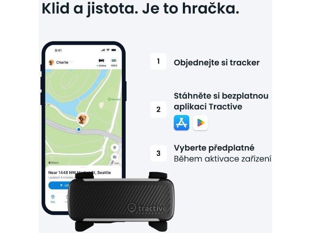 GPS tracker Tractive vás informuje, koľko sa váš pes pohybuje, spí a štekať. Môžete nastaviť ciele pohybu, kontrolovať Skóre kondície a porovnávať svojho psa s inými plemenami.Odolná konštrukcia