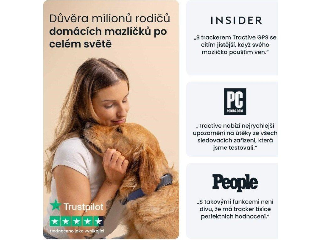 Zabezpečte svojmu psovi bezpečie a zdravie s Tractive DOG 6: výkonným univerzálnym GPS obojkom pre psov, ktorý vám v reálnom čase ukáže, kde presne pes je, sleduje jeho spánok a aktivitu a ponúka radu ďalších funkcií. GPS lokátor pre psov má v Českej republike a v ďalších viac ako 175 krajinách neobmedzený dosah vďaka integrovanému SIM karte, ktorá sa pripojí k akejkoľvek partnerskej sieti (je potrebná možnosť pripojenia k mobilnej sieti). Vyberte si predplatné, ktoré pokrýva náklady. Môžete si zvoliť predplatné na mesiac, 1, 2 alebo 5 rokov už od 90 Kč / mesiac*.*Cena s predplatným na 2 roky a jednorazovou platbou vopred. Ceny sa môžu zmeniť. Najnovšie informácie nájdete na adrese tractive.com/plans.