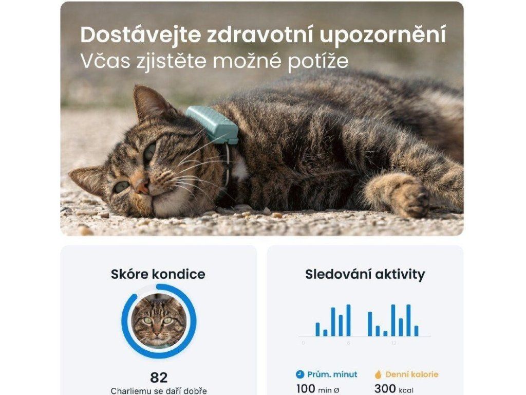 Tento GPS obojok pre mačky sleduje, ako veľmi sa vaša mačka počas dňa pohybuje. Nastavujte ciele, sledujte pokrok a porovnávajte s inými plemenami.Malý, ale silný