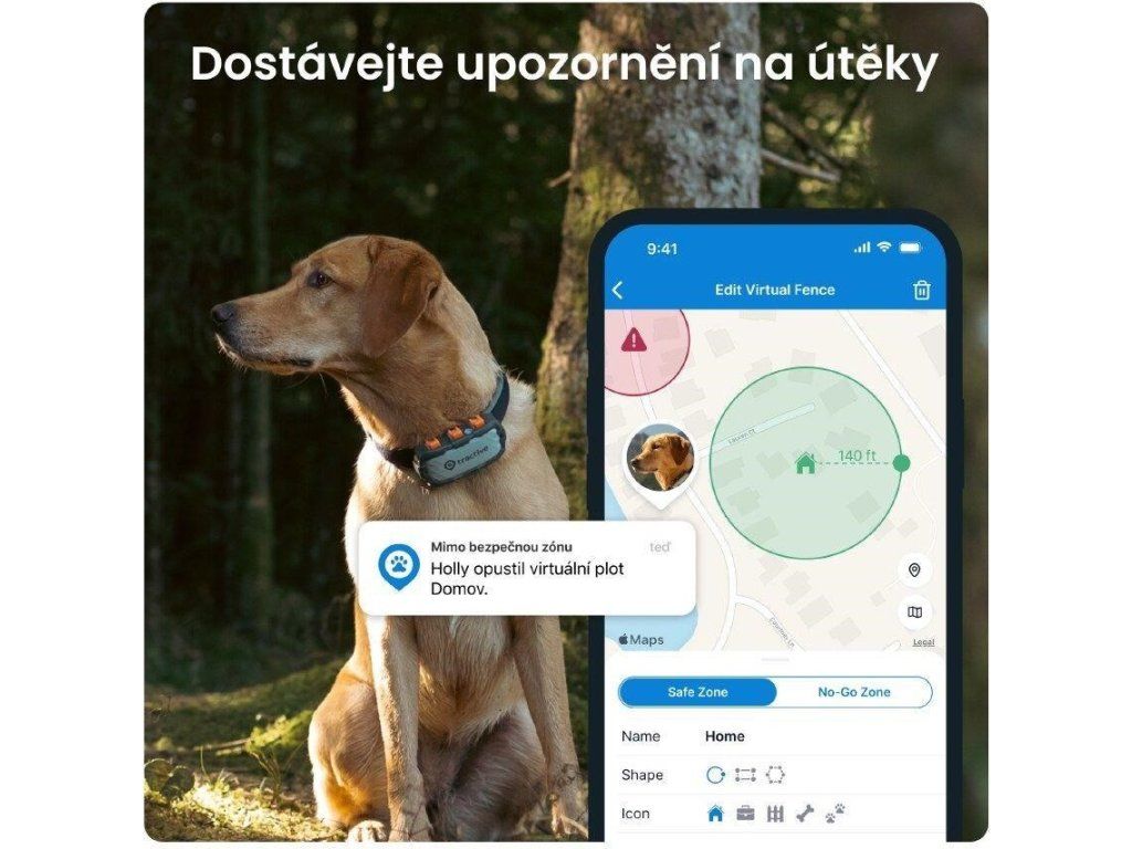 Nastavte Virtuálny plot pre GPS pre psov pomocou mapy v aplikácii Tractive. Ak váš pes opustí bezpečnú zónu, dostanete upozornenie na útek. Označte nebezpečné zóny, aby ste vedeli, keď sa vaše šteňa dostane niekam, kam nemá chodiť.Zdravotné upozornenia
