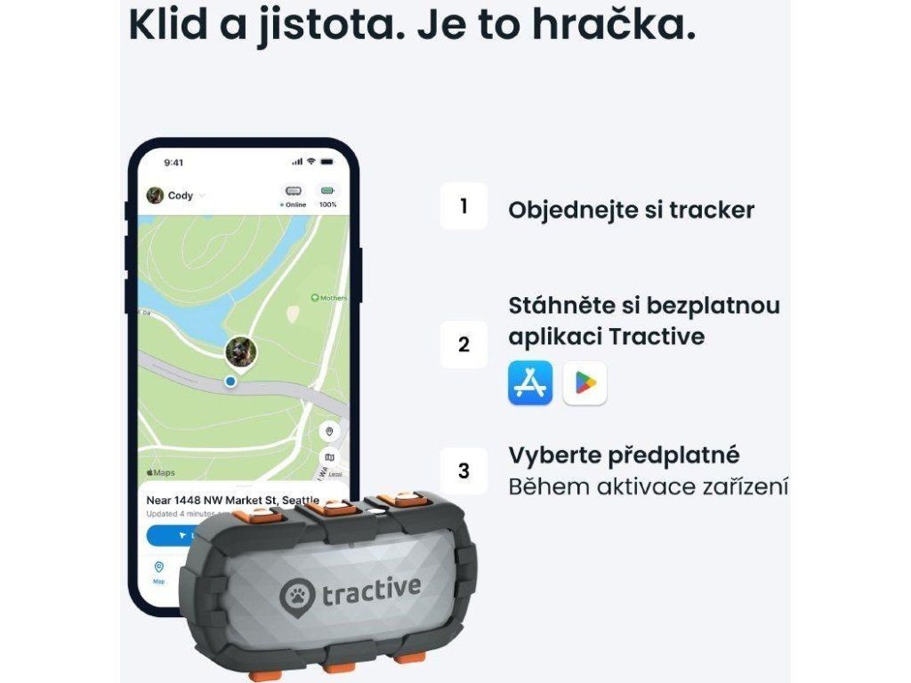 Základná aplikácia Tractive GPS Pet Finder pre smartfóny a tablety so systémom iOS, Android a Windows. Minimálne požiadavky na verzie systémov sú iOS 11 a Android 5.0.