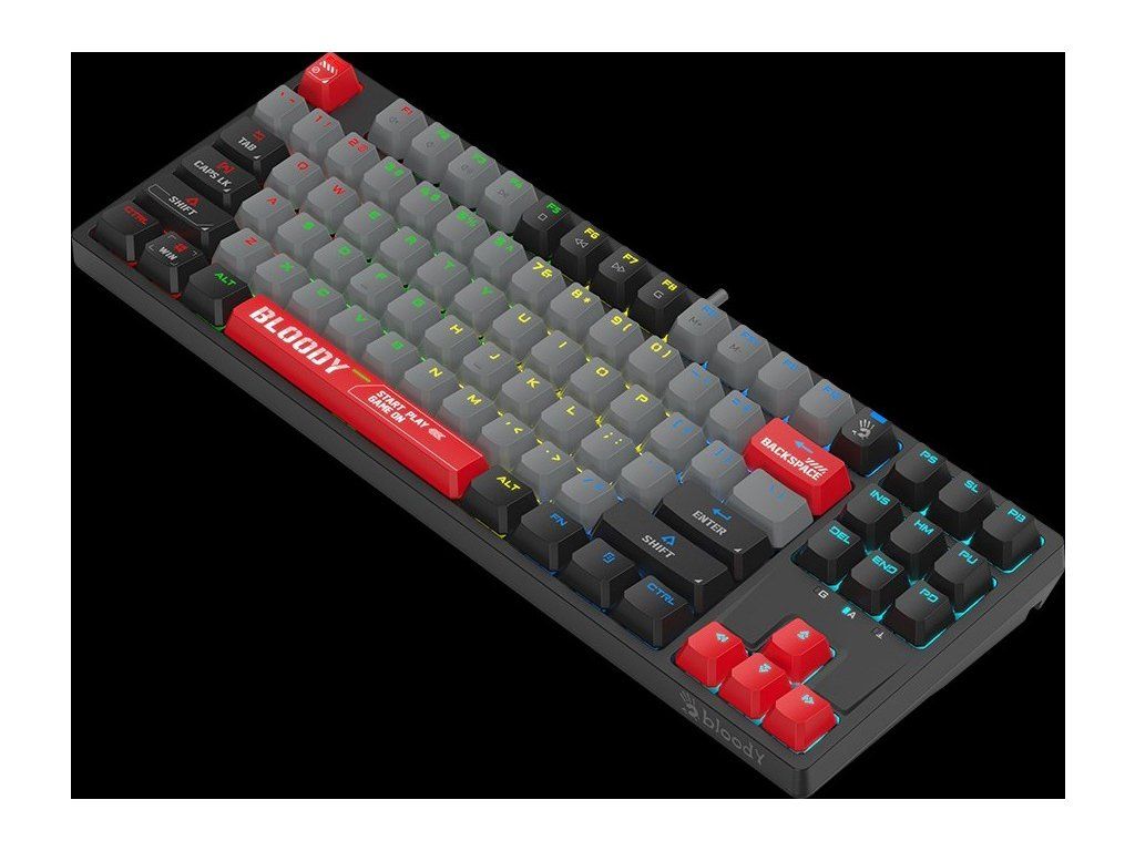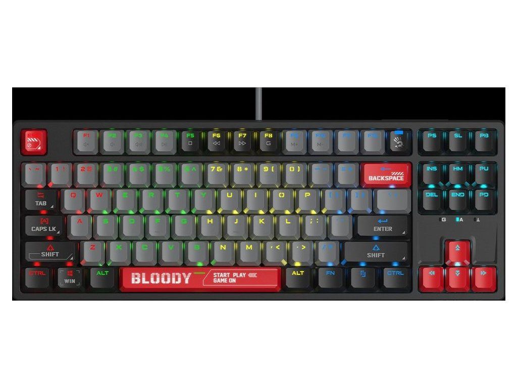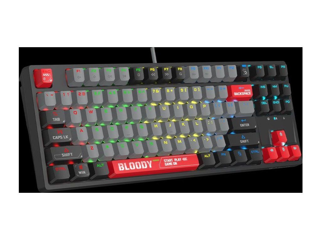 A4tech Bloody Klávesnice S87, herní klávesnice, mechanická, drátová, Red Switch, CZ/SK, Černá
