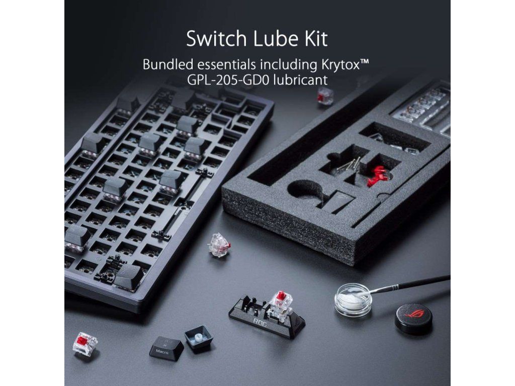 - Vylepšené možnosti písania: Predom namazaný stabilizátor klávesnice vytvára menšie trenie pre plynulejšie stláčanie kľáv a stabilitu pre dlhšie klávesy; odolné klávesy ROG PBT doubleshot ponúkajú prémiový pocit
