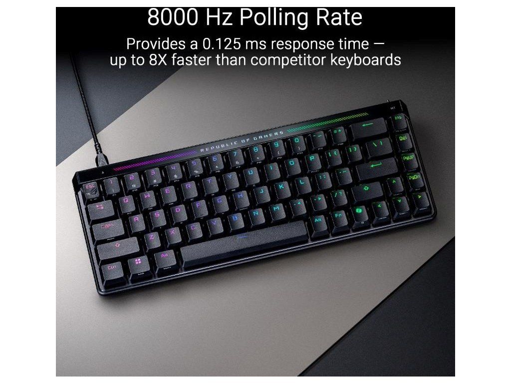 - 8000 Hz polling rate: Poskytuje dobu odozvy 0,125 ms – až 8x rýchlejšie než konkurenčné klávesnice