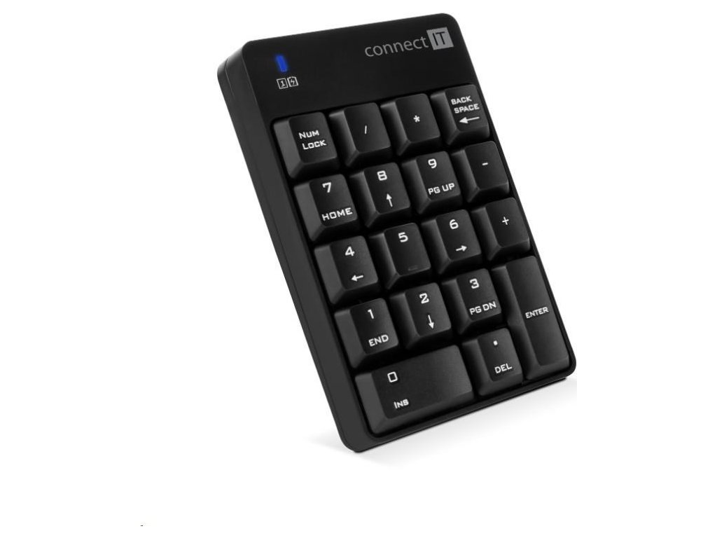 CONNECT IT NumCALC bezdrátová numerická klávesnice, (+ 1x AAA baterie zdarma), ČERNÁ