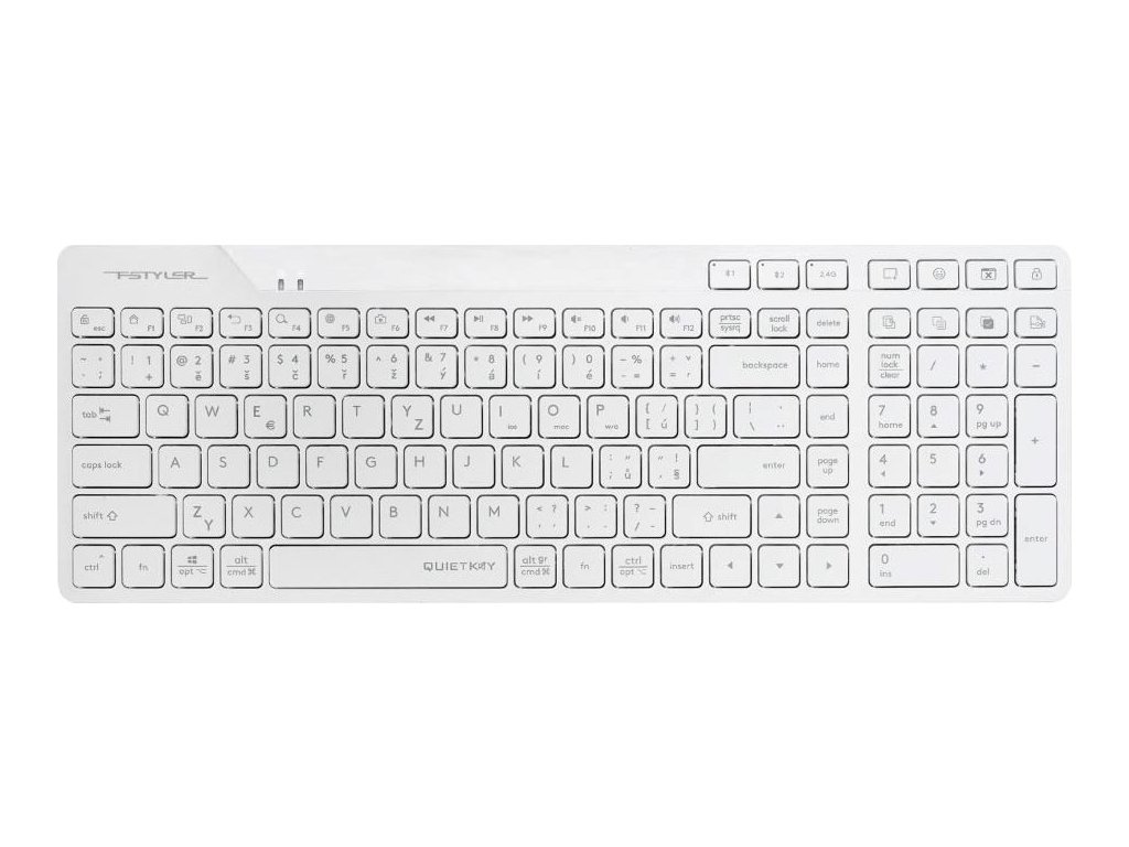 A4tech FStyler FBK27C AS, bezdrátová Dual mode Bluetooth+2,4G klávesnice, CZ, bílá