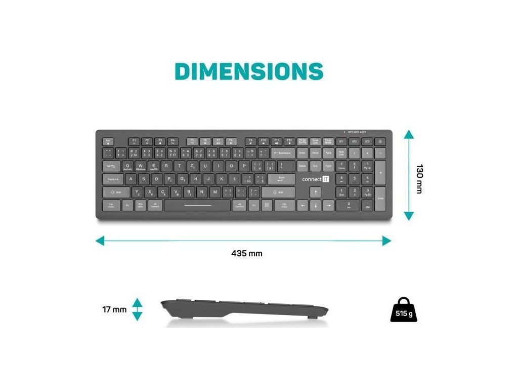 CONNECT IT kancelářská klávesnice MultiDevice, Bezdrátová, CZ + SK, šedá