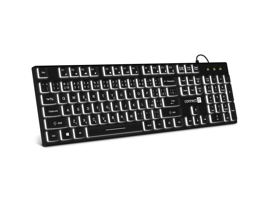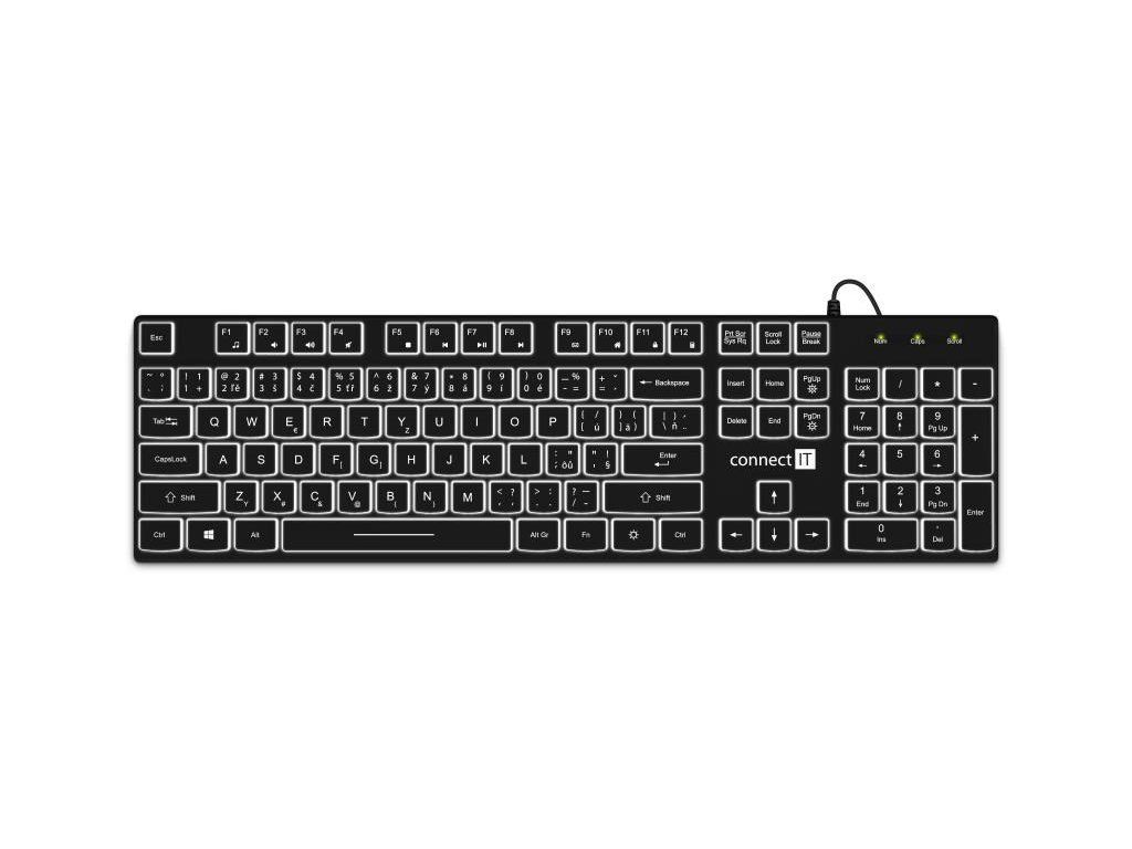 CONNECT IT kancelářská podsvícená klávesnice Chocolate WhiteStar, CZ + SK verze, černá