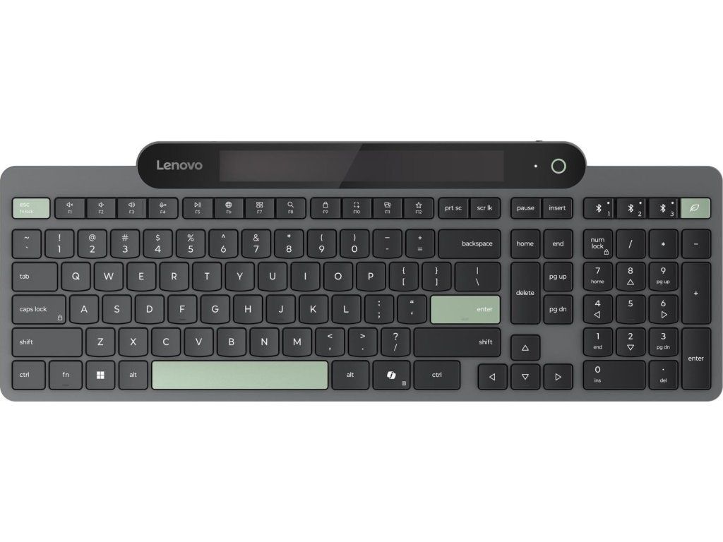 Klávesnica Lenovo Self-Charging Bluetooth Keyboard, navrhnutá pre moderných profesionálov a technologických nadšencov, disponuje pokročilou technológiou, ktorá nastavuje nový štandard v oblasti úspory energie. Jej pozoruhodná inovácia spočíva v bezbatériovom dizajne, ktorý využíva okolité svetlo ako zdroj energie a vďaka svojej nízkej spotrebe energie funguje plynulo za použitia okolného osvetlenia. Bluetooth pripojenie zabezpečuje stabilné spojenie až so tromi zariadeniami súčasne. Produkt je navyše vyrobený z 95 % z recyklovaného plastu, čo odráža silný záväzok k udržateľnosti životného prostredia.