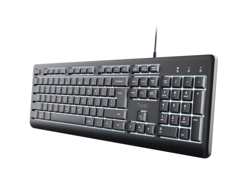 TRUST klávesnice Primo, Membránová, USB-C, Podsvícená, černá