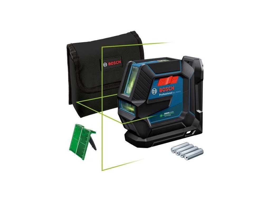 Bosch GLL 2-15 G čárový laser, pracovní dosah až 15 m, přesnost +/-0,3 mm/m, 4× baterie 1,5 V LR6 (AA)