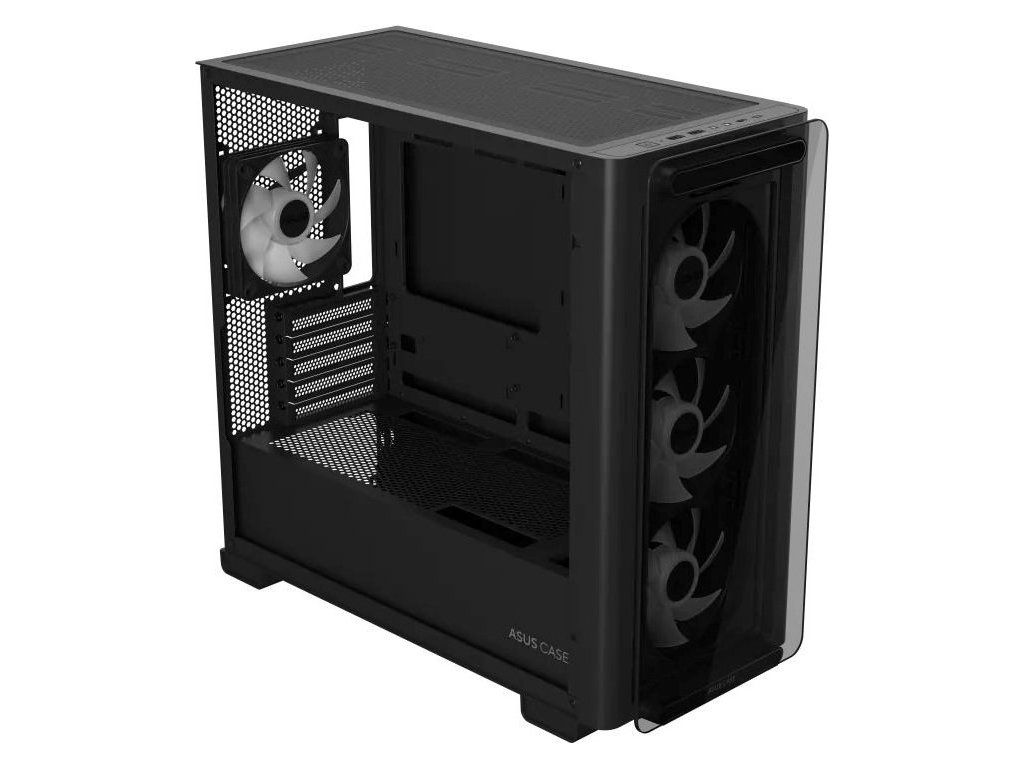 PC Skrinka ASUS A23 PLUS micro-ATX ponúka podporu pre základné dosky so skrytými konektormi, radiátory 360mm a až 380mm dlhé grafické karty, štyrmi predinštalovanými ventilátormi ARGB.