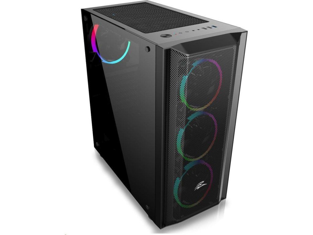 Gaming ATX midi tower s nainštalovanými 4x RGB rainbow 120 mm ventilátormi, ktoré sa ovládajú LED tlačidlom na hornej strane ovládacieho panelu. Predná mriežka cez celý predný kryt zabezpečuje účinné prúdenie vzduchu. Ľavá strana skrine obsahuje bočnicu z tvrdeného skla. Skriňa je určená pre základné dosky podporujúce platformy Intel aj AMD. Okrem formátu ATX je kompatibilný aj s formátmi Micro ATX a Mini ITX. Napájací zdroj je umiestnený v spodnej časti skrine. Spodná mriežka je vybavená výsuvným prachovým filtrom, horný prachový filter je pripevnený magnetmi a je odnímateľný.