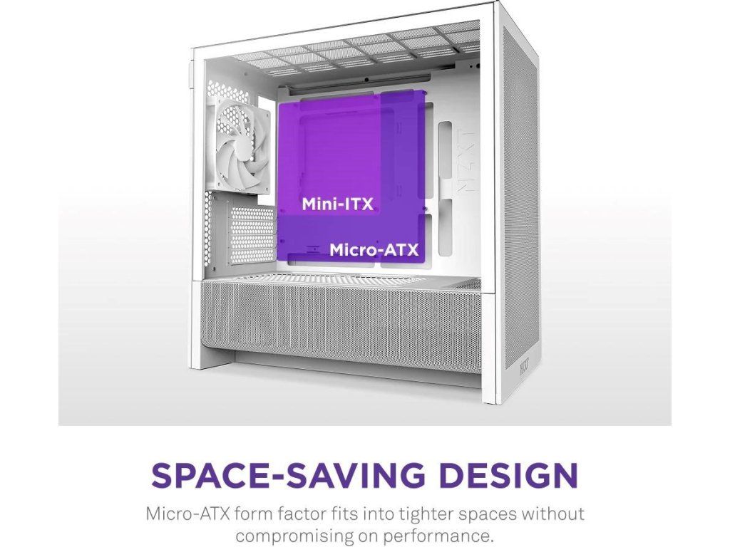 - Priestorovo úsporná veľkosť: Priestorovo úsporná skrinka formátu micro-ATX, ktorá pojme výkonné komponenty bez kompromisov.
