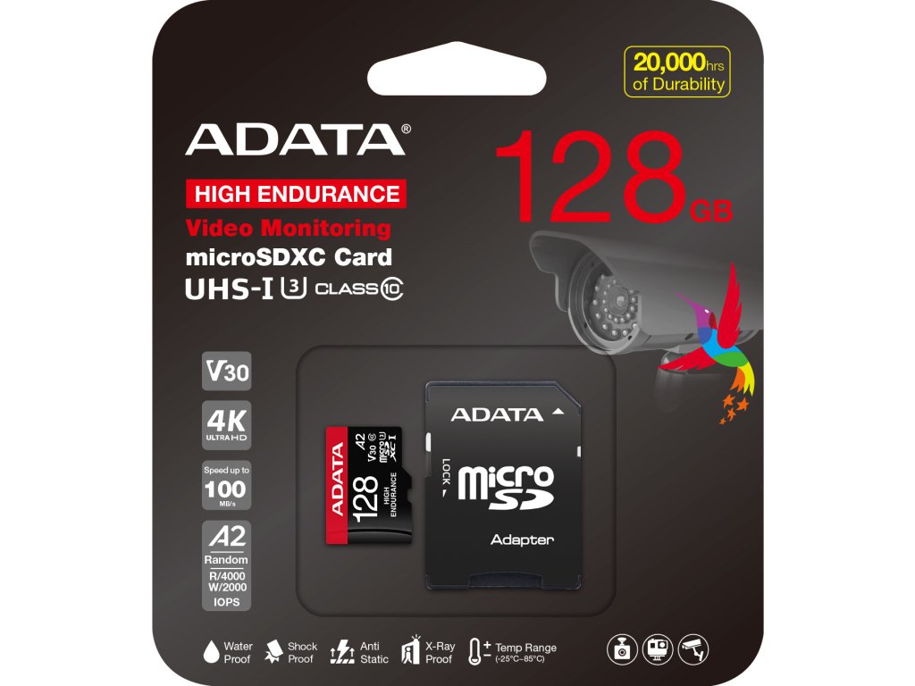 ADATA MicroSDXC karta 128GB High Endurance UHS-I C10 V30 A2 (R:100/W:85 MB/s) + SD adaptér