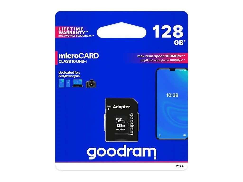 Karta GOODRAM MicroSDXC 128GB M1AA, UHS-I Class 10, U1 + adaptér