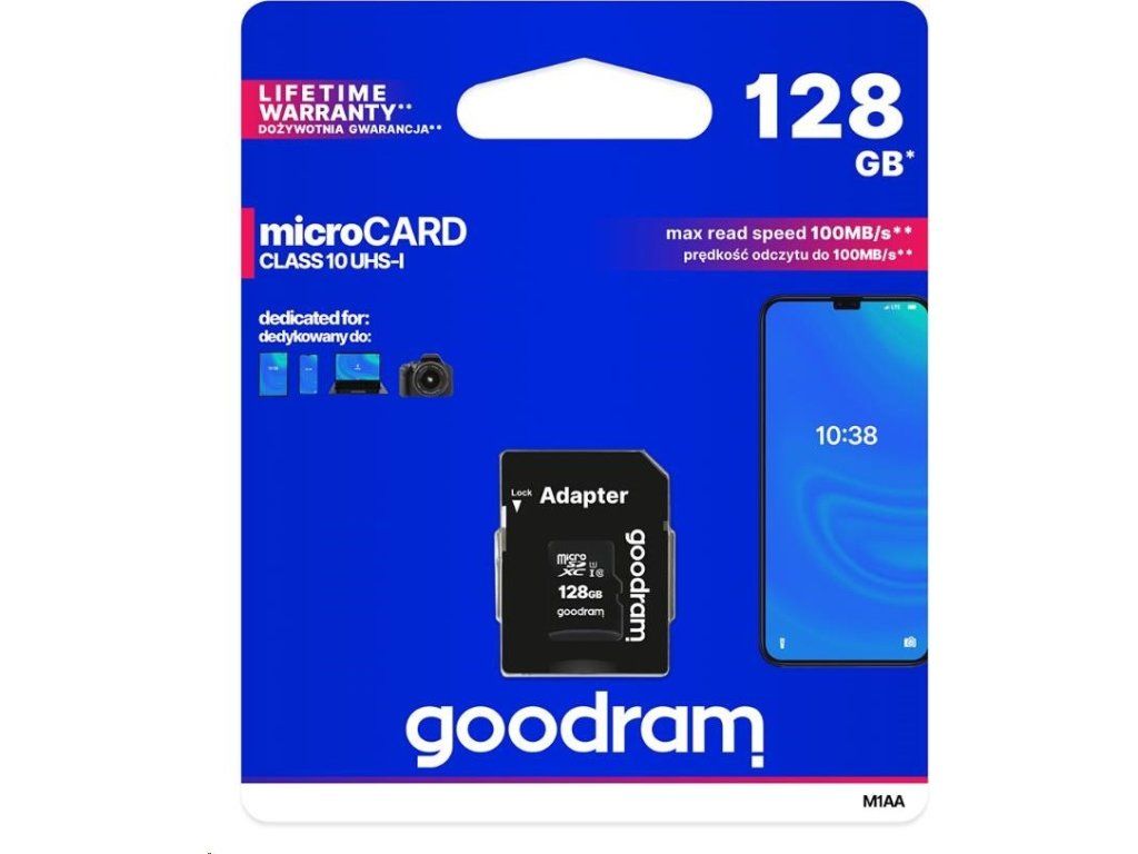 Karta GOODRAM microSDXC 256GB M1AA (R:100/W:10 MB/s), UHS-I Class 10, U1 + adaptér