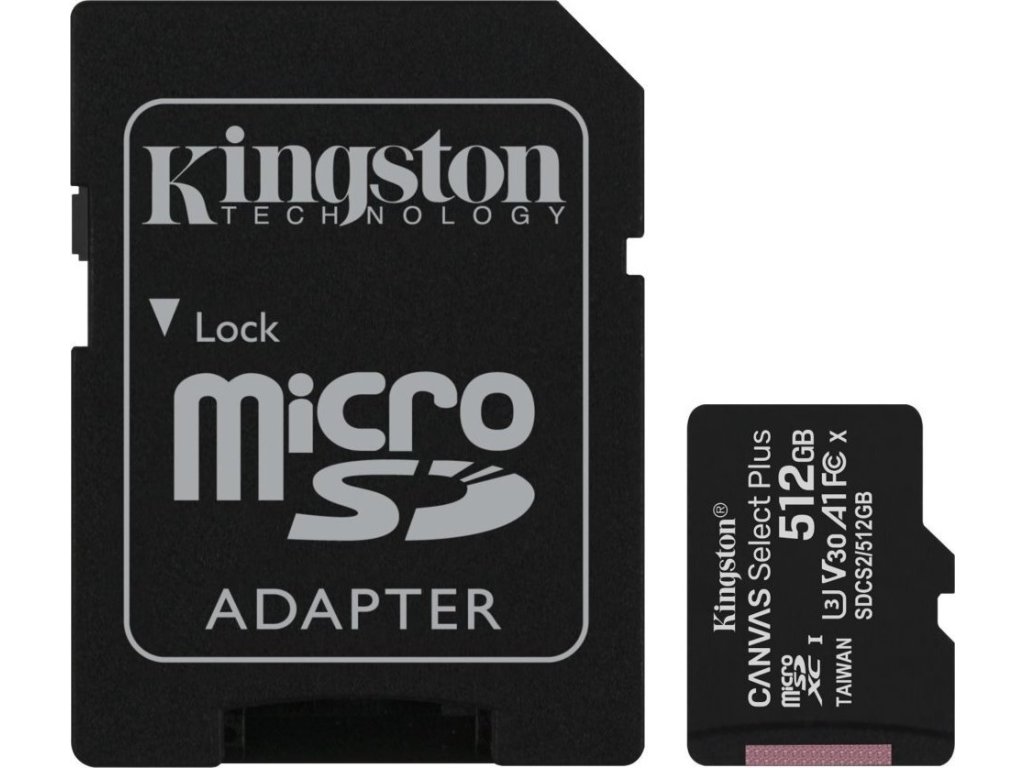 Karta Kingston 512GB micSDXC Canvas Select Plus 100R A1 C10 + adaptér SD
