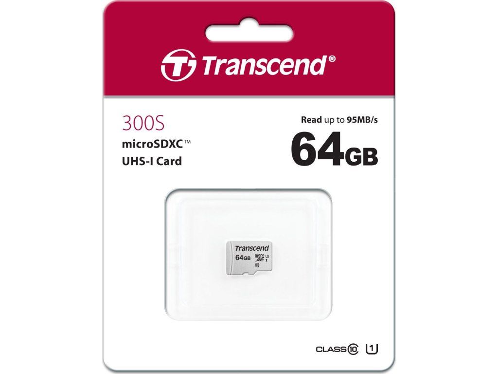 Karta TRANSCEND MicroSDXC 64GB 300S, UHS-I U1 + adaptér