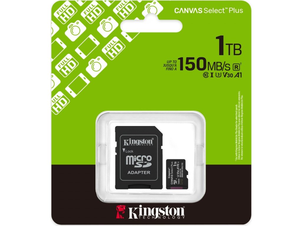 Kingston MicroSDXC karta 1TB Canvas Select Plus, U3, V30, A1, SD Adaptér