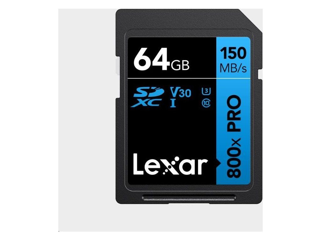 Lexar SDXC 800x Pro UHS-I cards, C10 (V30) U3, R150, 64GB
