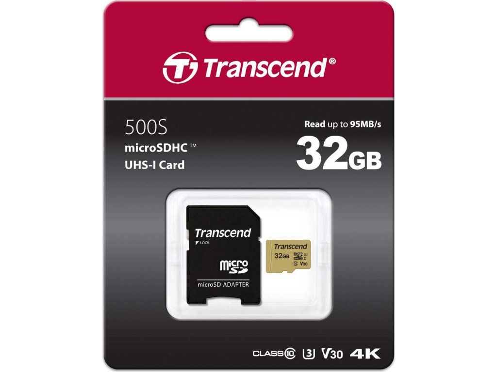 Karta TRANSCEND MicroSDHC 32GB 500S, UHS-I U3 V30 + adaptér