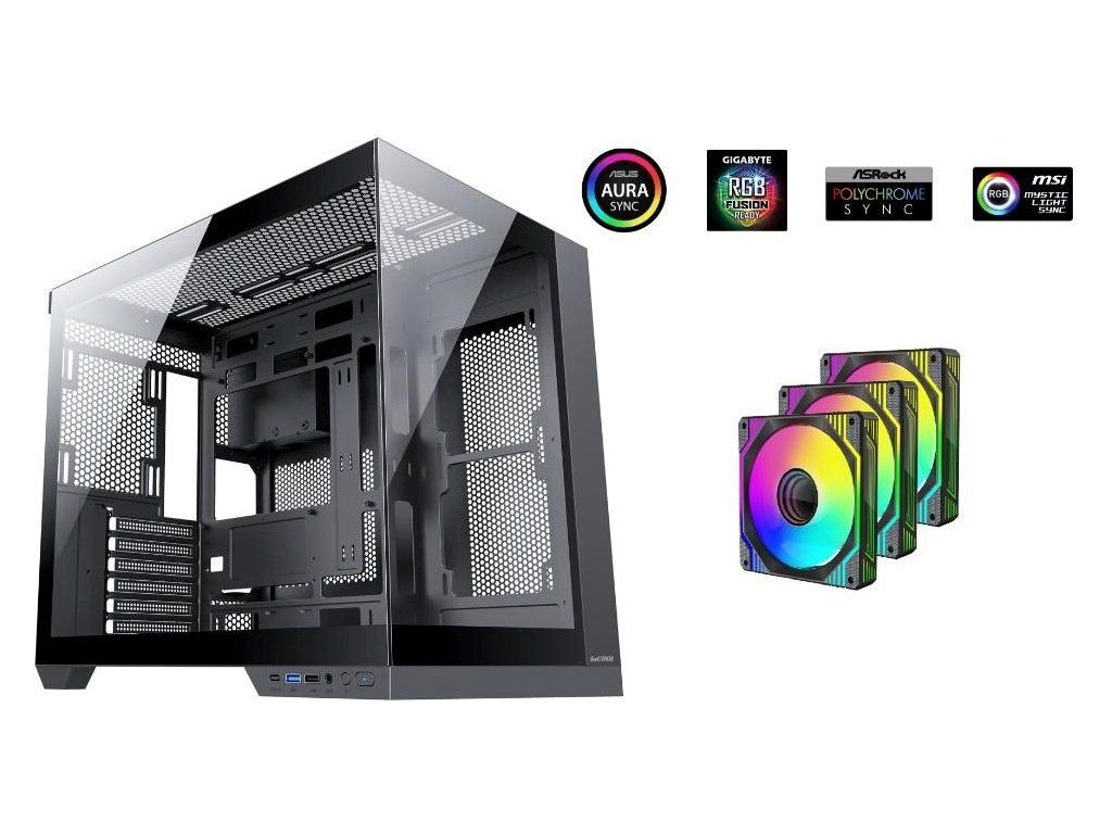 1stCOOL skříň DREAMER, Mid Tower, AU, USB 3.0, USB-C, 3x 120mm ARGB Fan, černá
