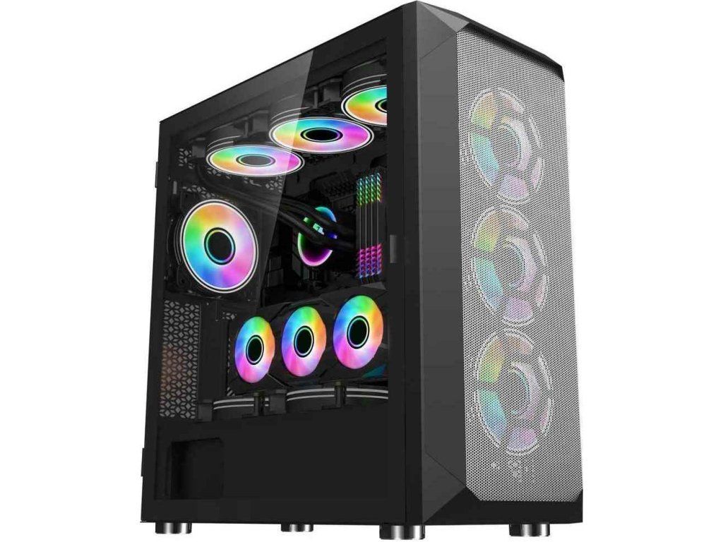 súčasťou výbavy je SET ventilátorov s adresovateľnými RGB LED diodami skladajúci sa zo 4*120mm RAINBOW (duhový) ARGB fan s možnosťou prepojenia s Vašou základnou doskou pomocou 3pin aRGB konektora + nano/reset ovládač (kompatibilný so systémami ASUS Aura Sync, MSI Mystic Light, GIGABYTE RGB Fusion a ASRock Polychrome Sync).