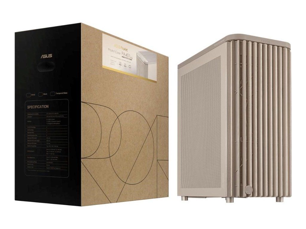 ASUS case PROART PA401 WOOD MESH PWM, ATX, 2x 160mm Fan, 1x 120mm Fan, Fan Hub, béžová