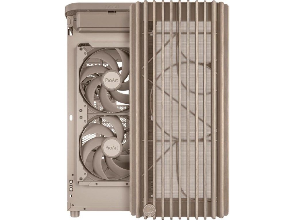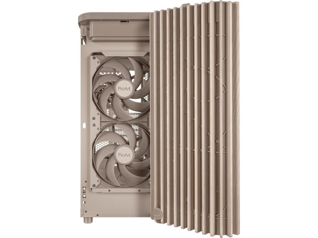 ProArt PA401 Wood Edition Beige má drevený predný panel, ktorý vytvára výrazný a elegantný vzhľad a zároveň podporuje udržateľnosť. Použité drevo je certifikované Forest Stewardship Council (FSC) a je dokončené šestimístnym procesom úpravy. Skrinka tiež ponúka optimálne vestavné chladenie s dvoma 160mm prednými ventilátormi a jedným 120mm zadným ventilátorom, spolu s integrovaným hubom pre ventilátory, ktorý umožňuje optimálne prúdenie vzduchu.
